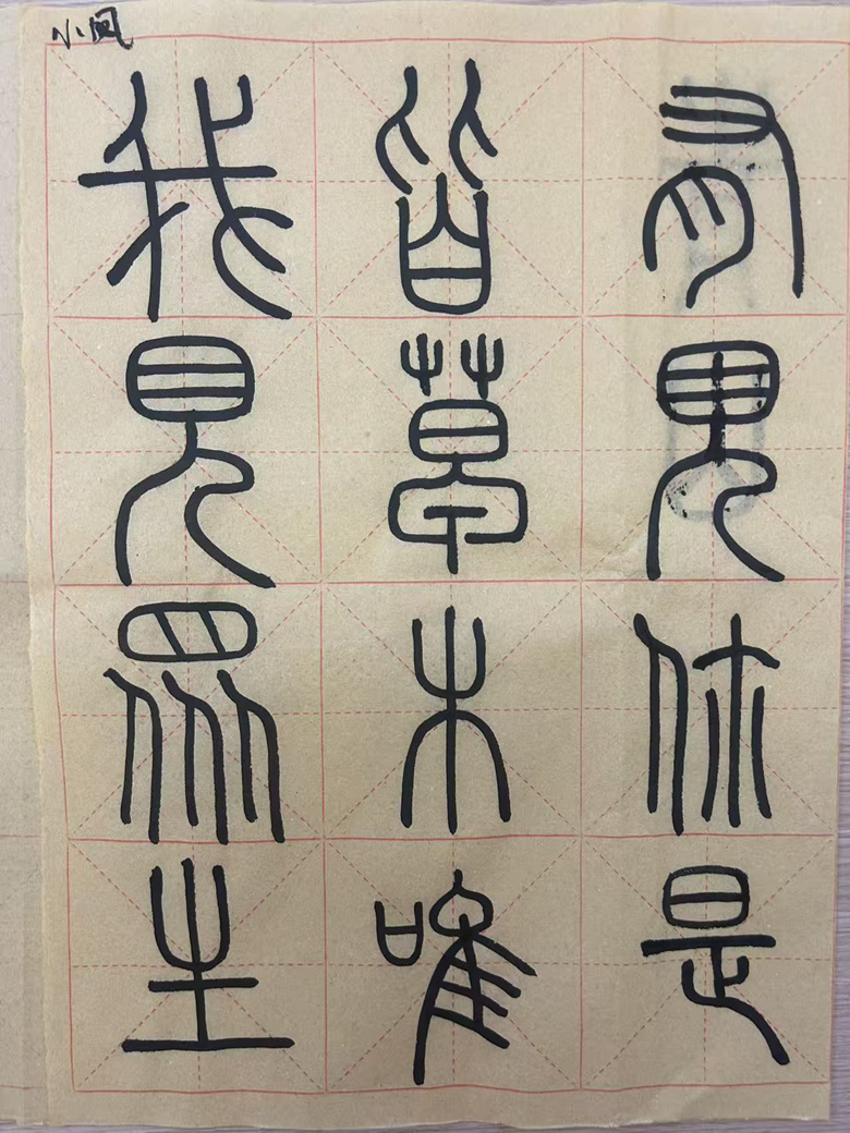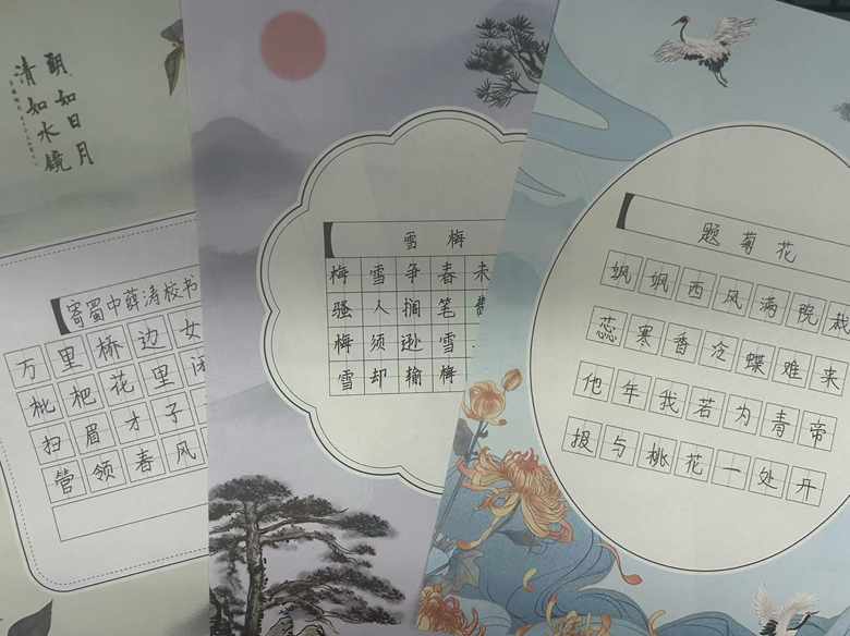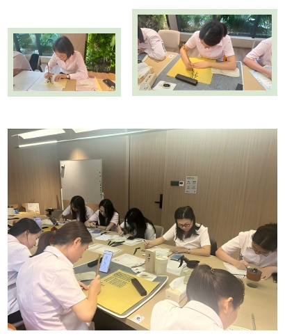 姐妹们执笔端坐,凝神书写。笔尖划过纸面,沙沙声轻响成韵。无人交语,各自沉浸于横竖撇捺之间。